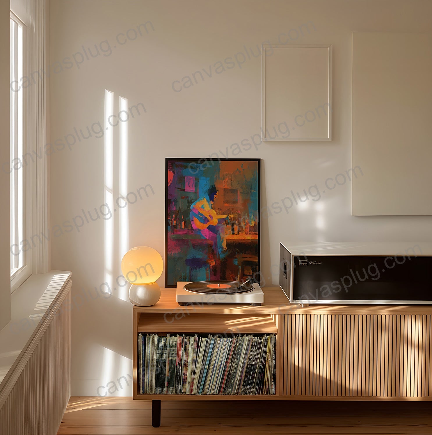The abstract composition blends energy with calm, creating a sense of rhythm that extends beyond sound and into space itself. Perfect for living rooms, studios, or creative environments, this piece brings warmth, mood, and artistic depth — a visual reminder that some of the most powerful moments are created long after the lights go out.
