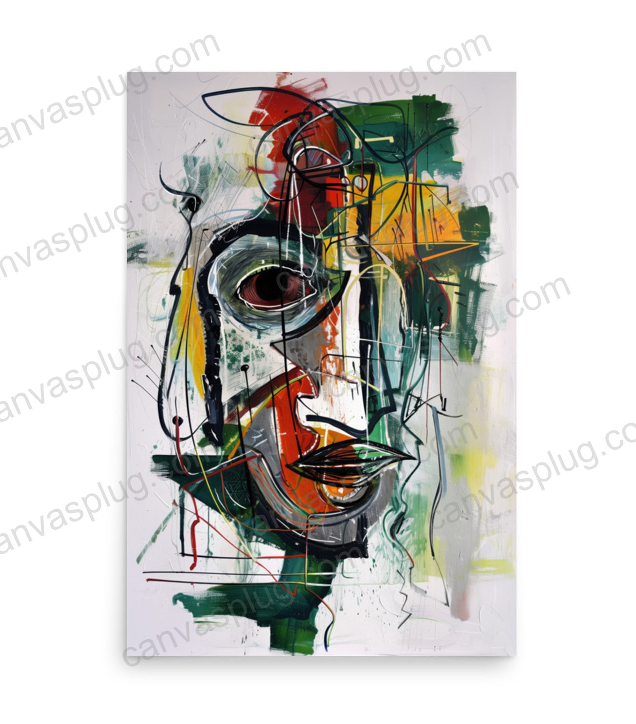 Fractured Vision explores perception through layered abstraction — a face deconstructed into bold lines, geometric fragments, and expressive color fields. Deep greens, burnt orange, and muted ivory collide across the canvas, creating a tension between clarity and distortion. One striking eye anchors the composition, pulling the viewer into a world where identity is both revealed and reassembled.