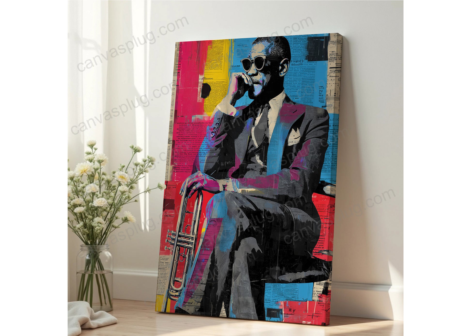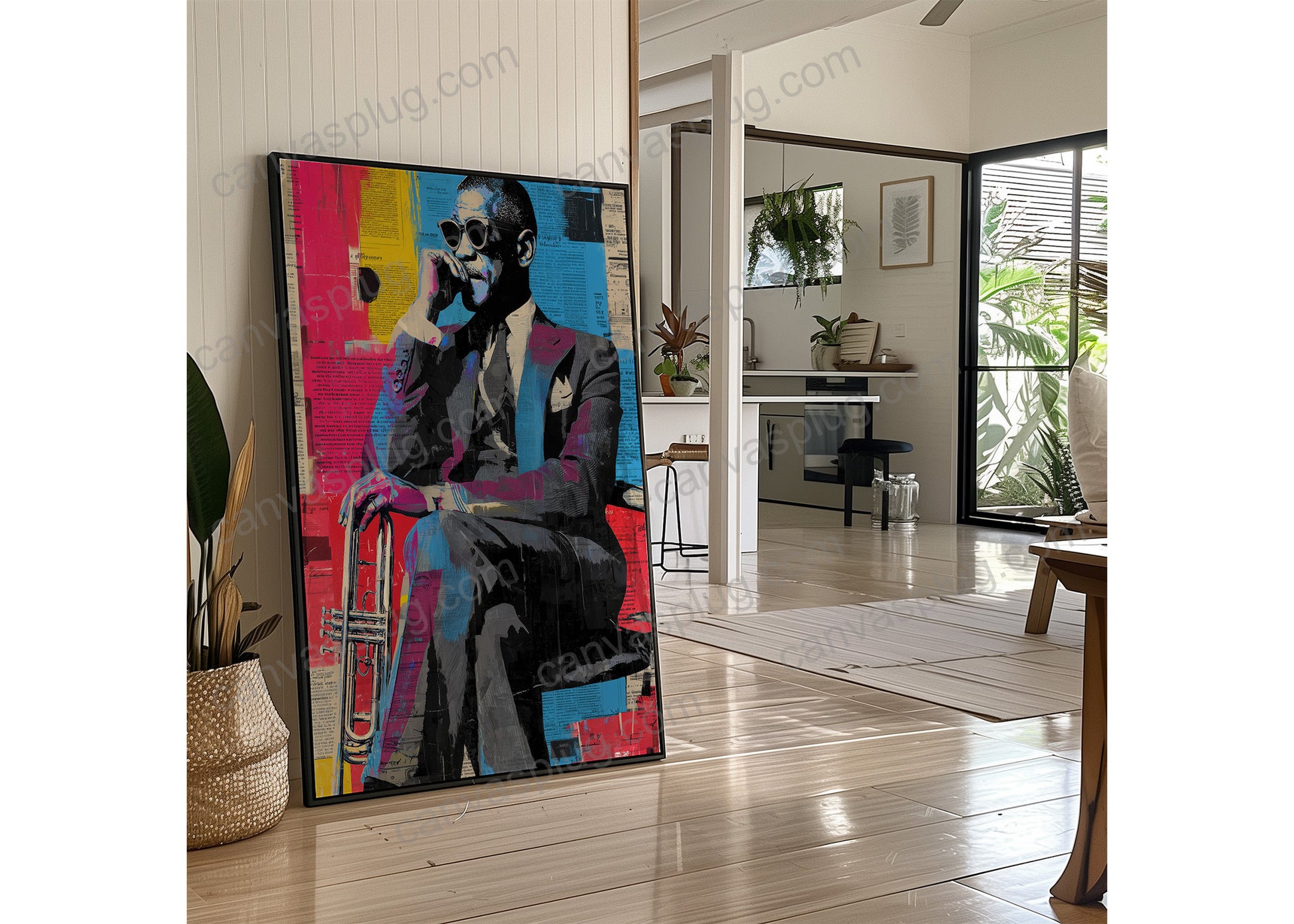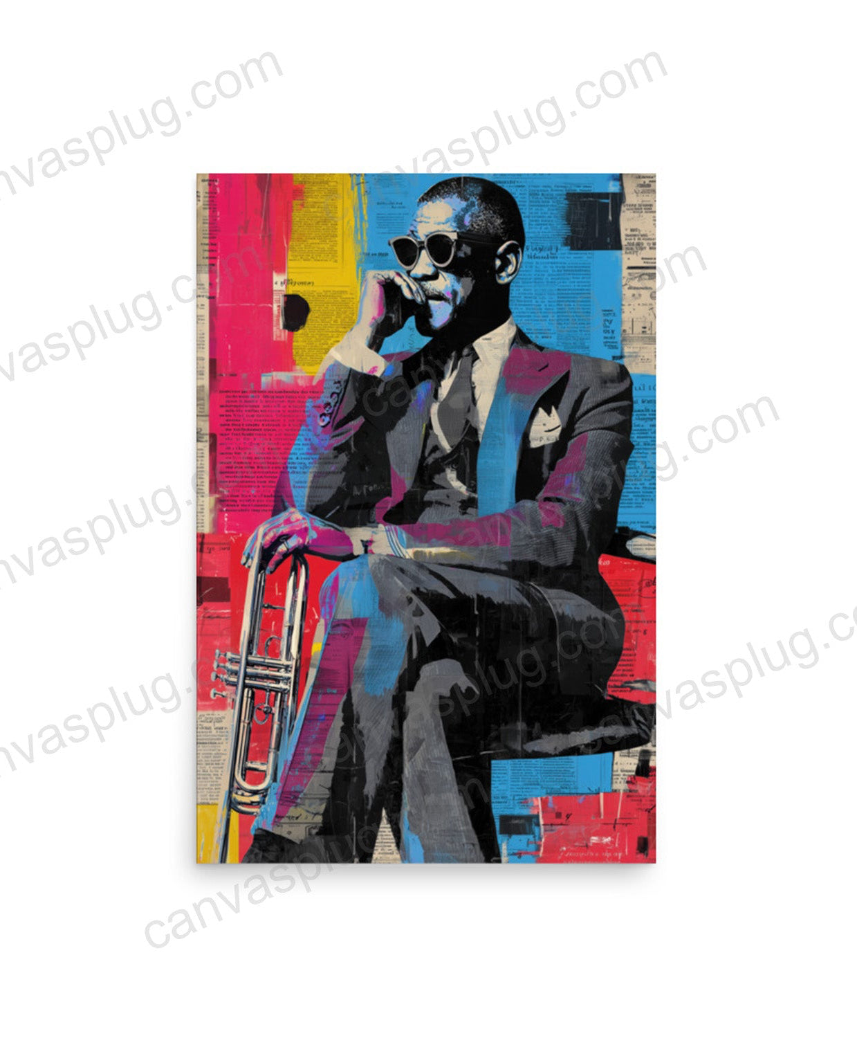 A study in composure and command, this piece captures the quiet intensity before the music begins. Layered textures and bold color blocks merge culture, legacy, and modern edge — turning stillness into a statement. A powerful addition to any space that values confidence and character.